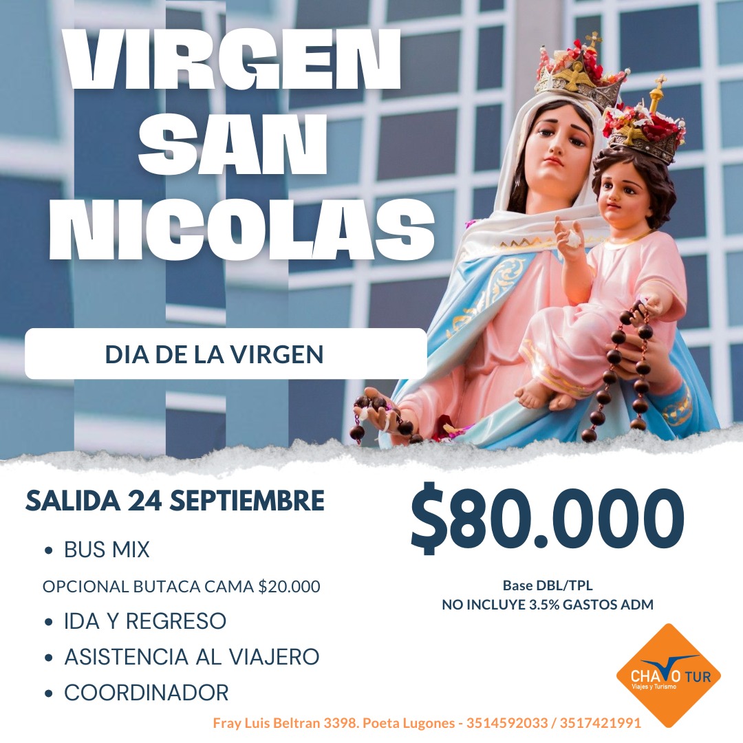 El 25 de Septiembre se recuerda un nuevo aniversario de las Apariciones de María en San Nicolás, que se sucede desde su primera aparación en 1983. La gente acude desde todo el país en busca de favores, milagrosos y agradecimientos los dias 25 de cada mes en el lgar conocido con el nombre de «El Campito».